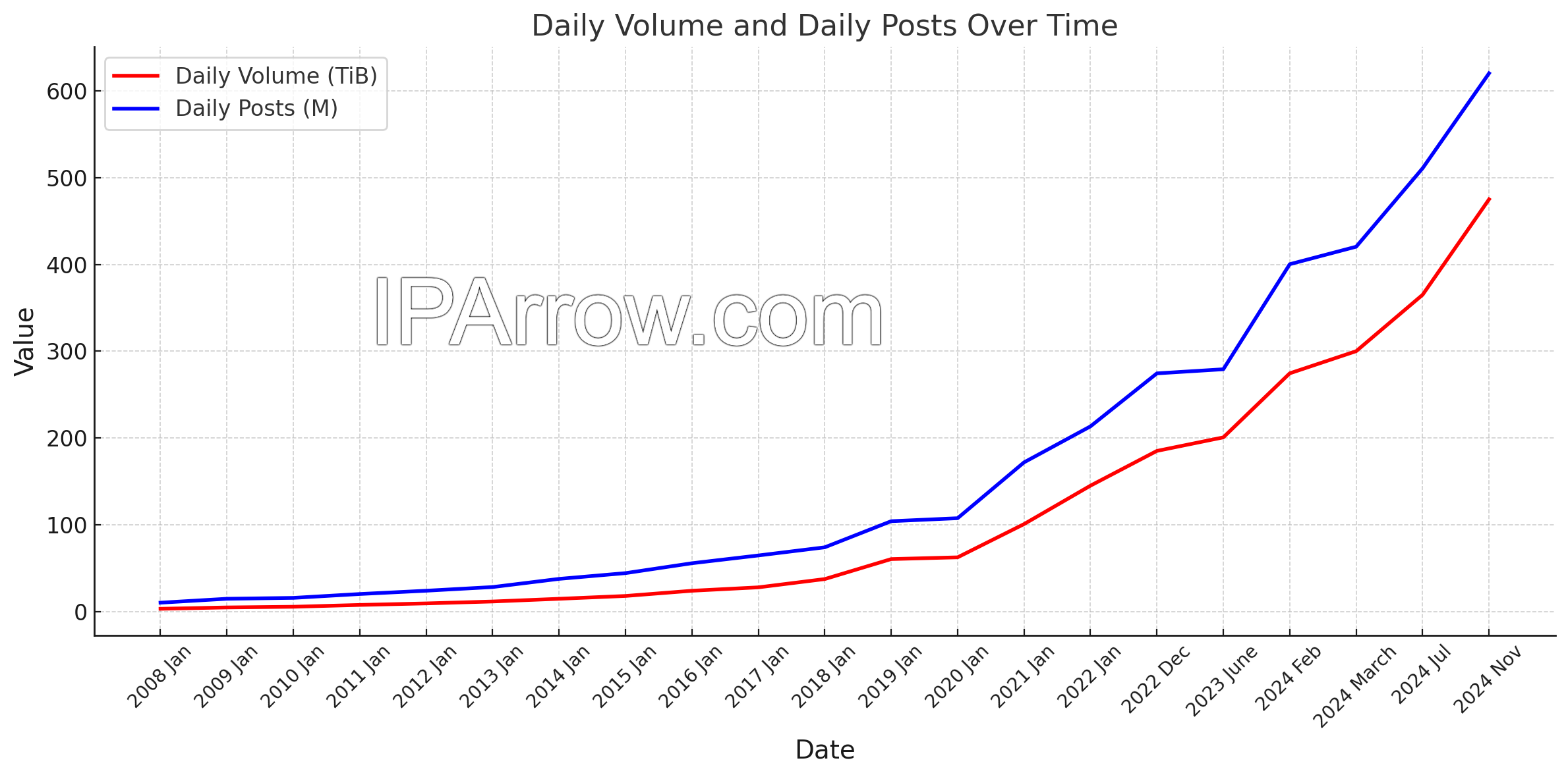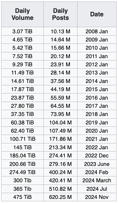 Here are a few charts that we originally obtained from wikipedia and have since kept updated to show how much Usenet has grown since 1996.